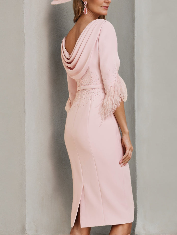 Sheath/Column Scoop Tea-Length Mother of the Bride Dresses with Feather