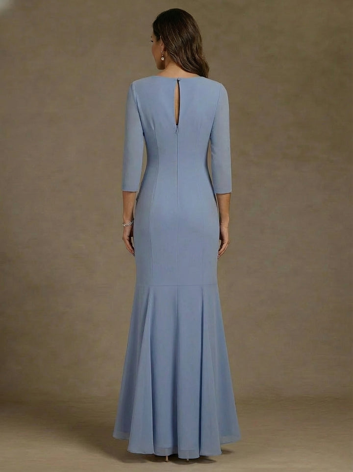 Trumpet/Mermaid Scoop Chiffon Mother of the Bride Dresses Asymmetrical Ankle-Length High Low 3/4 Sleeves Ruffles