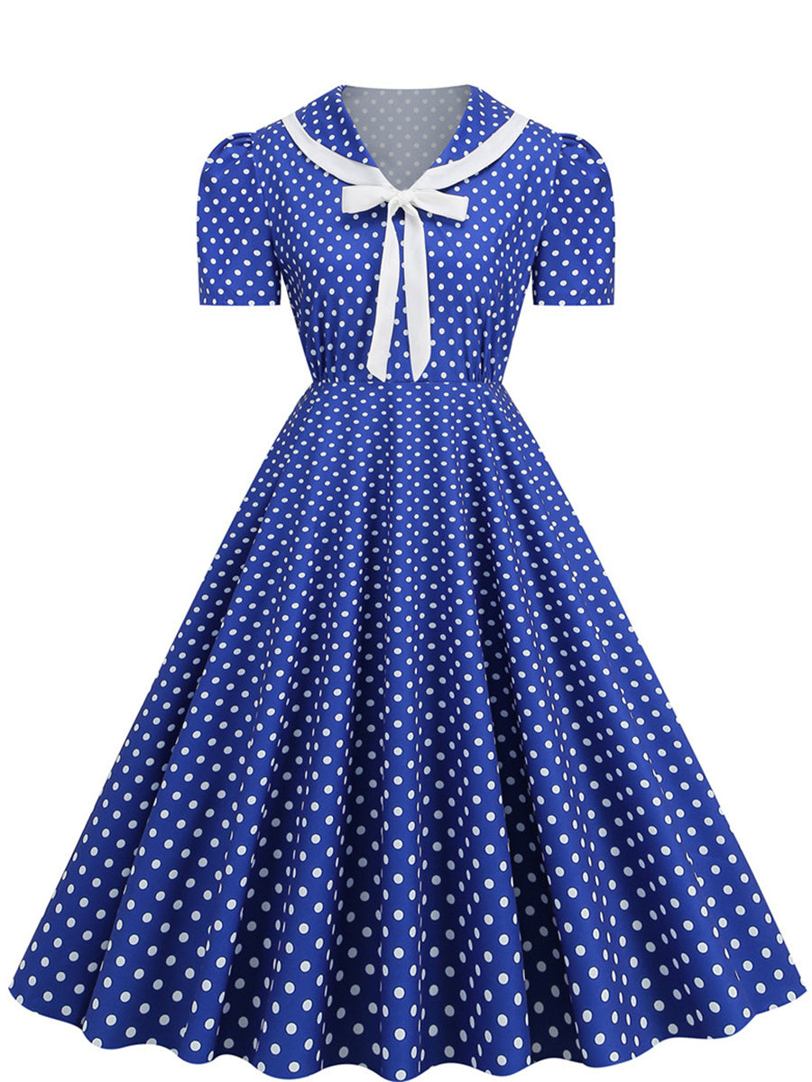 A-Line/Princess V-Neck Elegant Vintage Costume Dresses with Dots & Bows