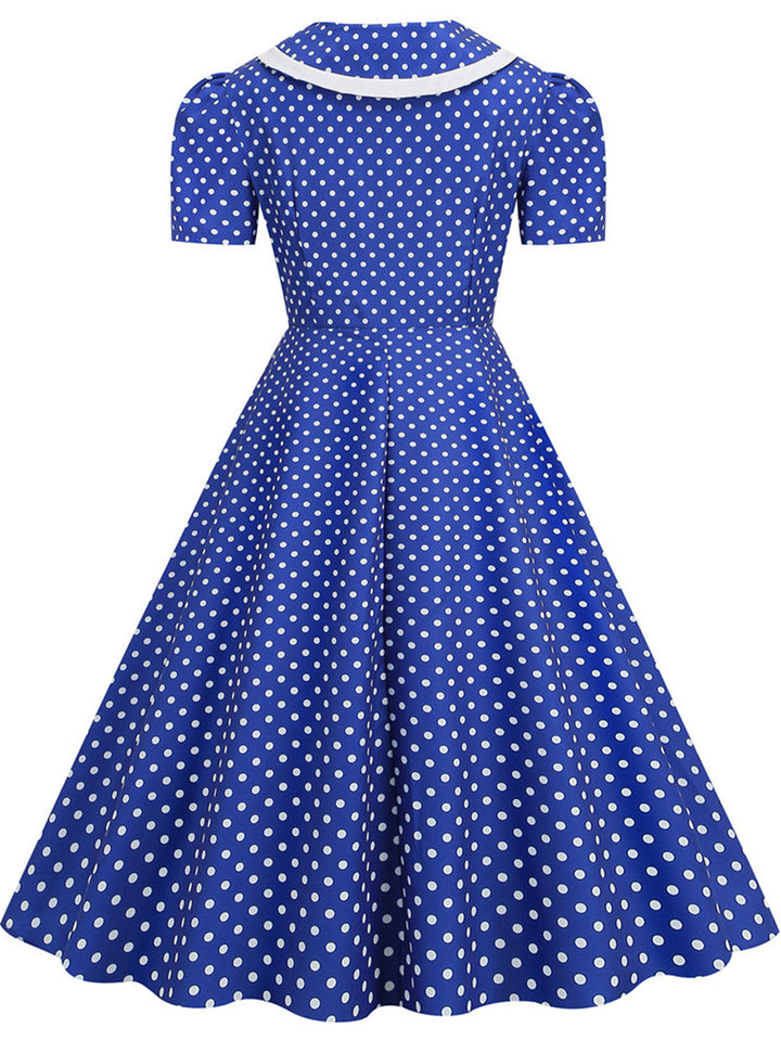 A-Line/Princess V-Neck Short Sleeves Plus Size Vintage Costume Party Dresses with Dots