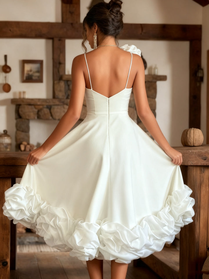 A-Line/Princess V-Neck Little White Dresses Spaghetti Straps Party Dresses with Ruffles