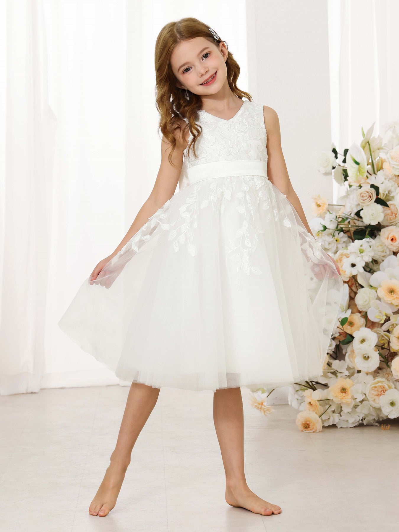 MON11112416 MONDRESSY A-Line/Princess Lace Sleeveless V-Neck Knee-Length Flower Girl Dresses