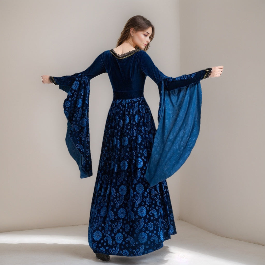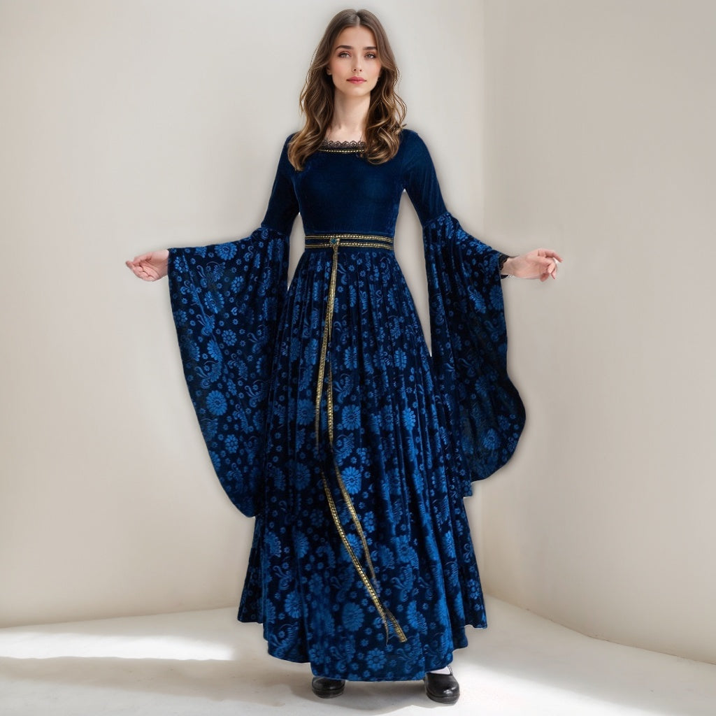 MON6041332W MONDRESSY A-Line/Princess Scoop Neck Long Sleeves Ankle-Length Medieval Halloween Court Witch Dress with Cloak