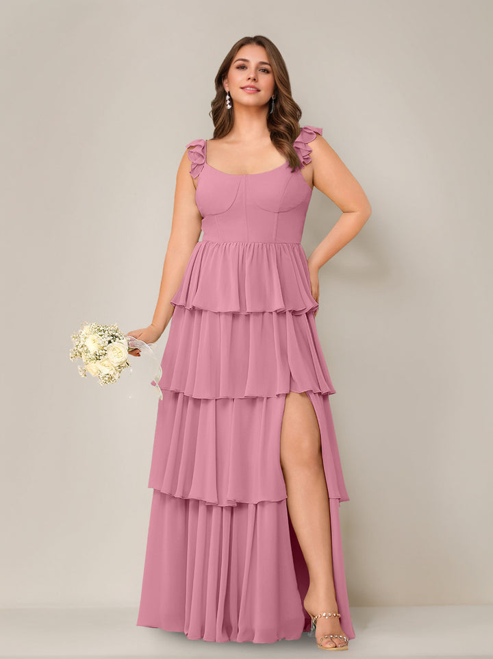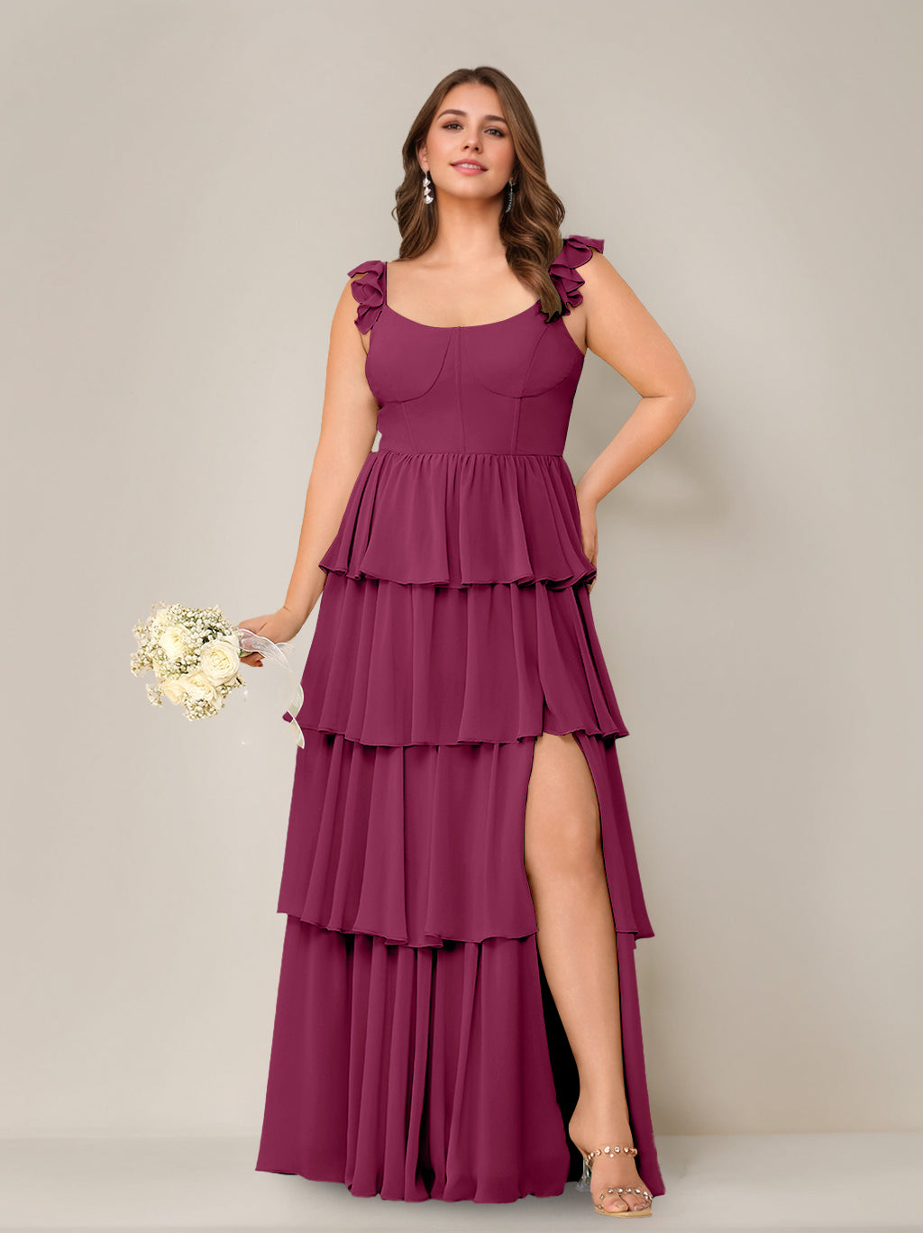 MON5412251P MONDRESSY A-Line/Princess Scoop Neck Sleeveless Floor-Length Plus Size Bridesmaid Dress with Ruffles & Split Side